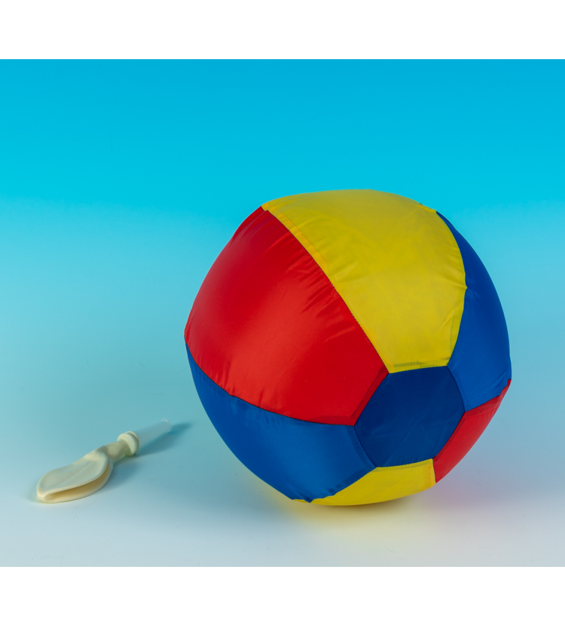Ett färgglatt textilöverdrag med en extra stark ballong inuti (3 ballonger följer med varje boll). Du kan sedan ”fylla på” med till exempel vår ballong 41cm.