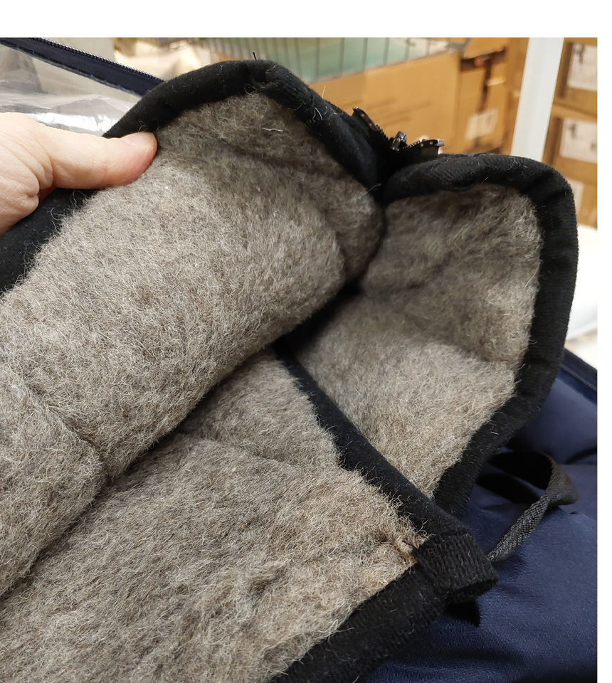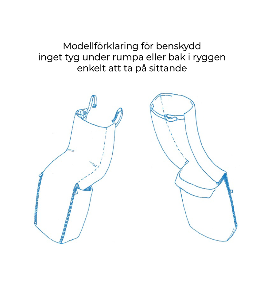 Benskydd fodrat med 80 % äkta fårull. Yttertyg av tåligt vattenavstötande nylon/thermoplus.