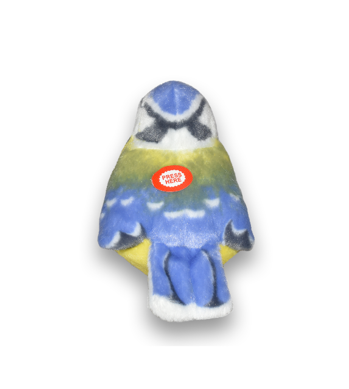 Fågel som låter när du trycker den på magen, i mjuk plysch. Fågelns autentiska fågelläte är inspelat och kommer som vacker sång när du trycker den på magen.