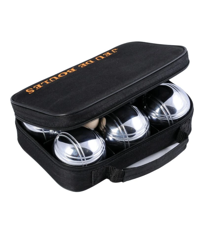Kulorna levereras i en smidig nylonväska för förvaring, en målkula ingår i setet.
