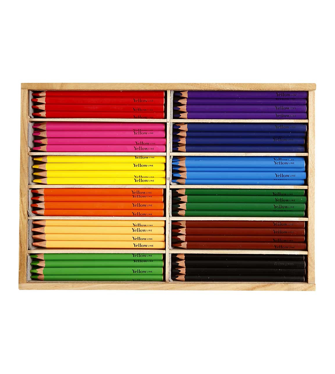 Väl mellan pack med 12 pennor eller storpack i praktisk trälåda med 12X12 färger.