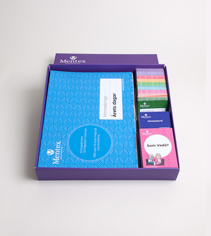 Genom att välja vår låda med 15 spel får du möjlighet att välja aktivitet utifrån vårdtagarens intresse och tidigare kunskaper.