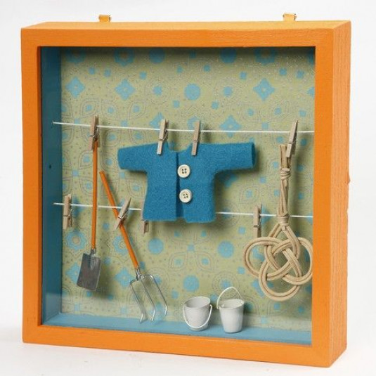 3D-ram med 2 st. klädlinor och 8 st. mini klädnypor och klart plexiglas.