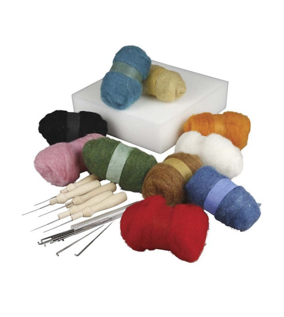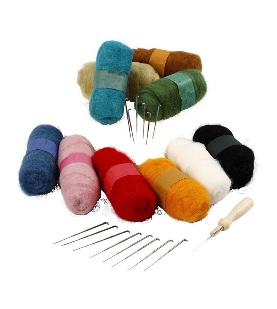 Startset med nålfiltning. Komplett materialset till nålfiltning med ull.