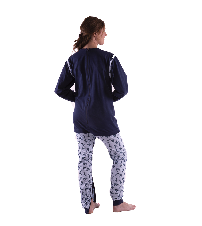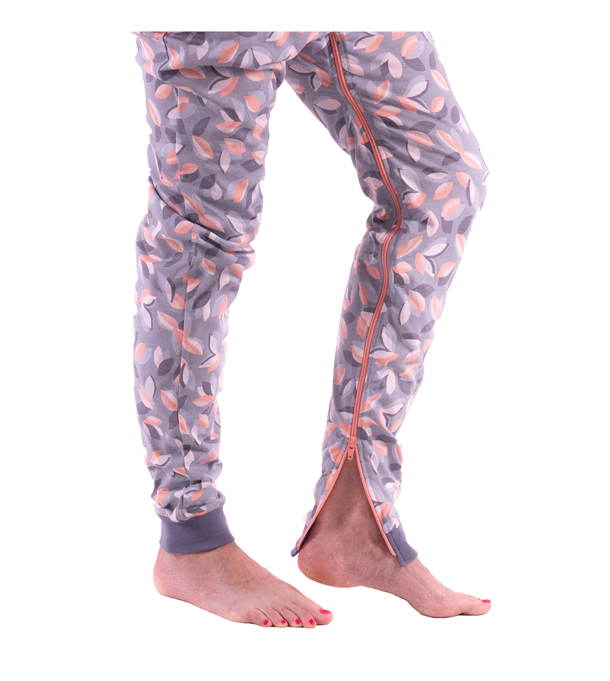 Hjälper till att förhindra plock med inkontinensskydd. Dragkedjan i grenen går längs hela insidan av benen.