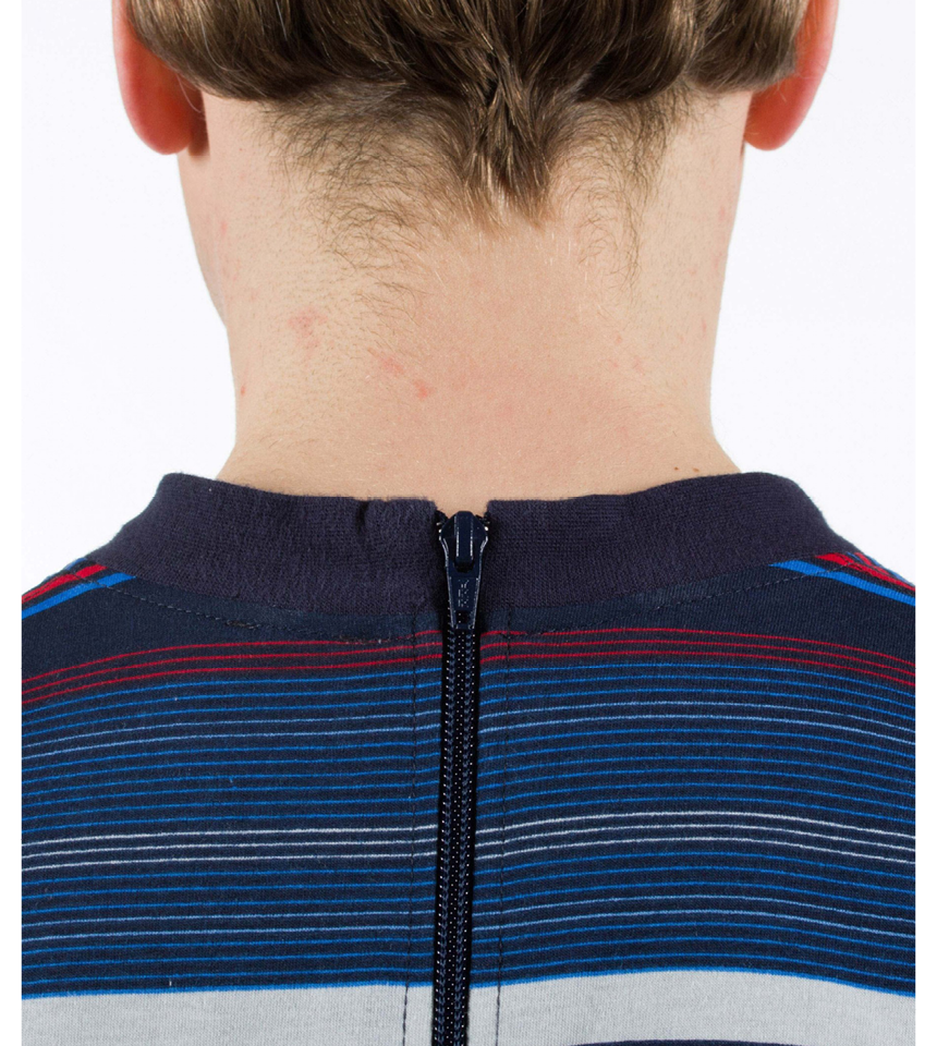Overall i 100% bomull med mjuk dragkedja i både gren och rygg. Ger intryck av en tröja och byxa men allt sitter ihop som en hel overall. Hjälper till att förhindra plock med inkontinensskydd.