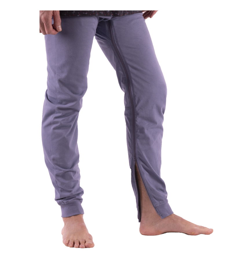 Dragkedjan i grenen går längs hela benens innersömmar för att underlätta byte av inkontinensskydd.