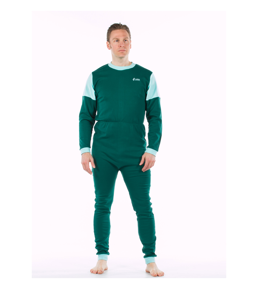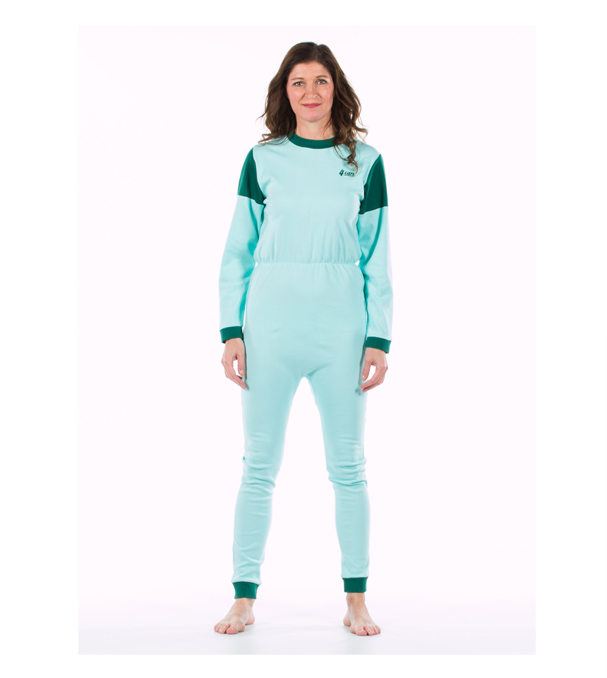 En lite kraftigare overall i 100% bomullstrikå. Hjälper till att förhindra plock med inkontinensskydd.