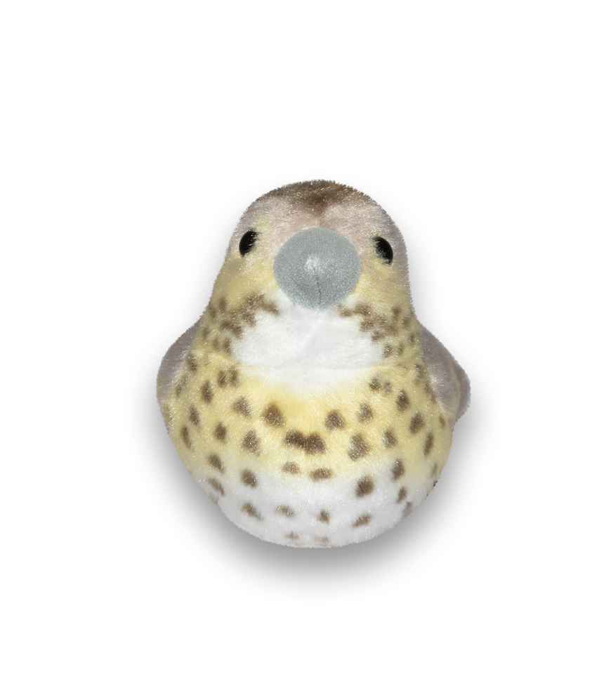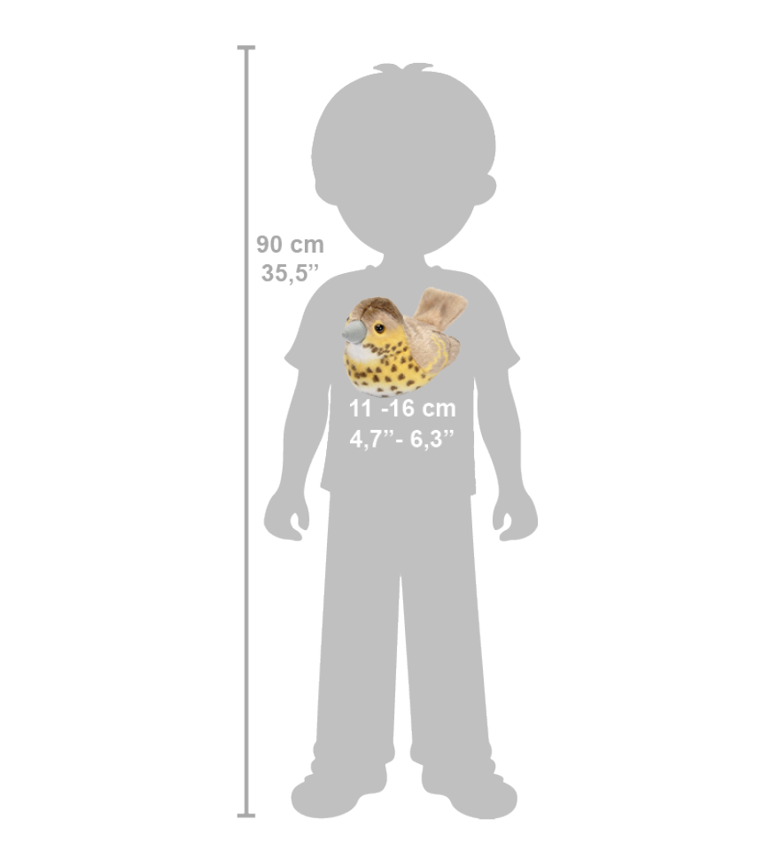 Fågel som låter när du trycker den på magen, i mjuk plysch. Fågelns autentiska fågelläte är inspelat och kommer som vacker sång när du trycker den på magen.